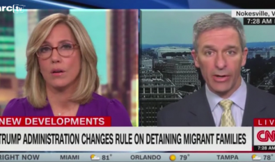 When Cuccinelli made the point about protecting children, Camerota let out a loud sigh, then rolled footage of allegedly overcrowded conditions in which children would be kept. CNN arranged it so that Cuccinelli could not see the footage, and when he tried to make his point, Camerota attempted to cut him off. That prompted Cuccinelli to say: