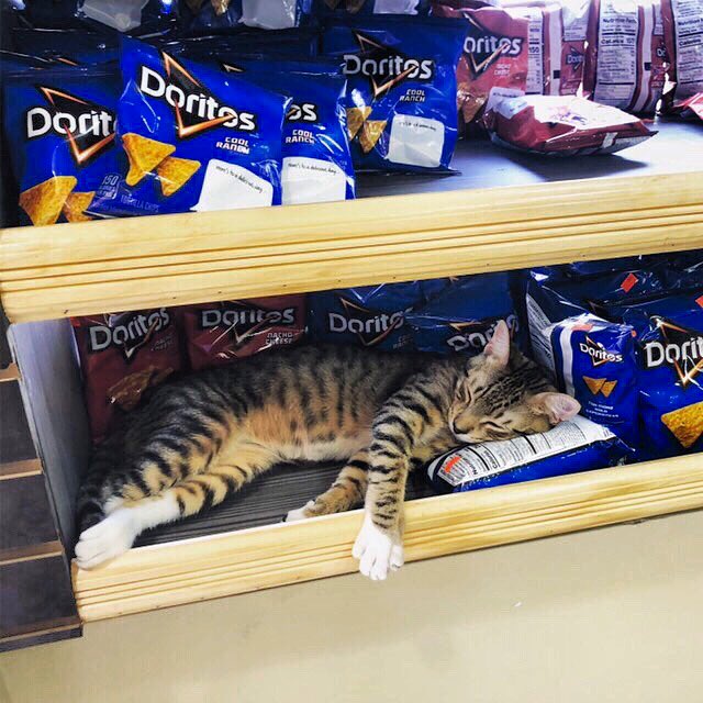 That's pretty influential. Baldwin likewise could have interviewed this cat sleeping on Doritos, who received 10 times as many retweets.