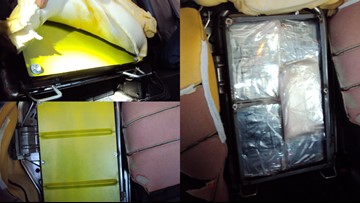 Agents searched the vehicle and noticed the headrests of the backseats were unusually solid. Further inspection revealed two metal boxes fixed in the headrests. Inside the boxes were 12 plastic wrapped packages were nine packages of fentanyl, weighing 22 pounds. This quantity contains enough doses to kill more than 5 million people. The remaining three packages contained cocaine and weighed 2.64 pounds. The narcotics have an estimated street value of $236,400.