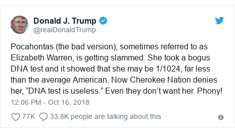 KEYWORDS: elizabethwarren; fauxcahontas; omg; pocahontas; trump; twitter; warren; warrendna