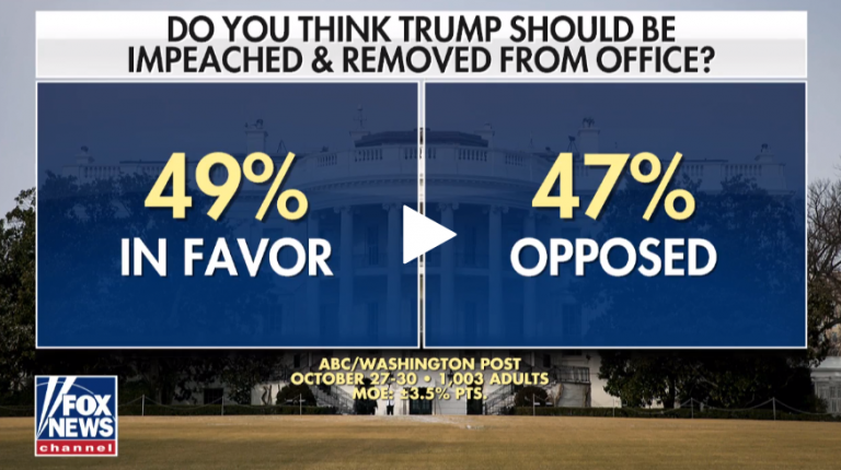 RUSH: Speaking of these polls, this is a carryover from the first hour. Ladies and gentlemen, I got poll after poll after poll, there are three polls today. We have an NBC/Wall Street Journal poll. We have a Fox News poll. We have an AP poll. All three of these polls say 49% want Trump impeached and removed and one of them says, 51% or 52% want Trump impeached or removed.