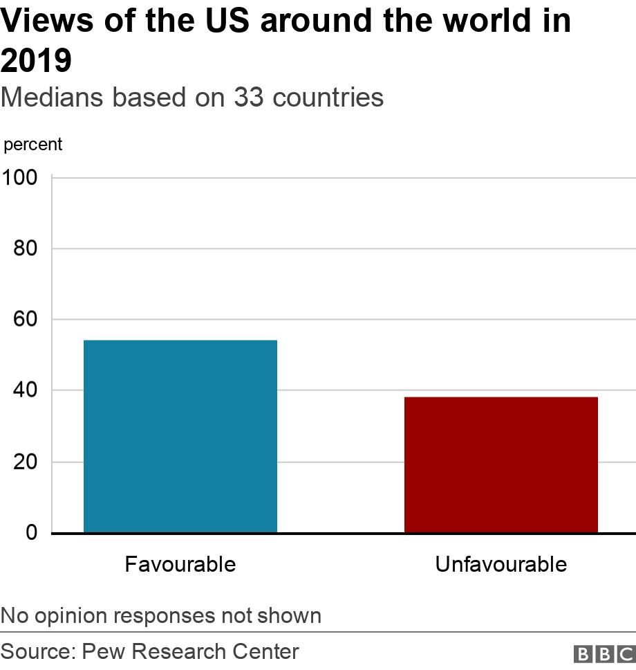 Only 29% of the countries surveyed by Pew expressed confidence in Mr Trump last year, in keeping with how his presidency has been viewed since its infancy in 2017.