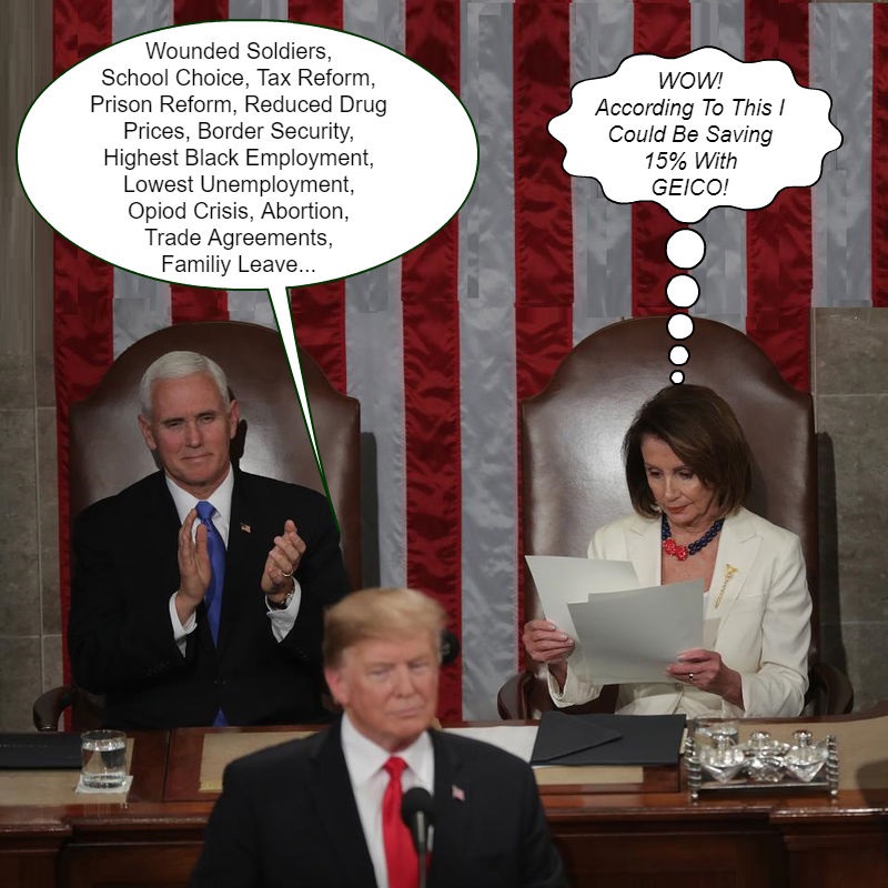 I liked when Pence deadpanned that he he had a great seat for the SOTU but the woman sitting beside him didn’t seem to enjoy it nearly as much.