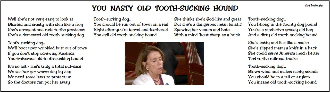 Nancy Botox ripped up the chances of a Dem president...it was very low to being with but now, if Trump put that in an ad, it would be no chance...