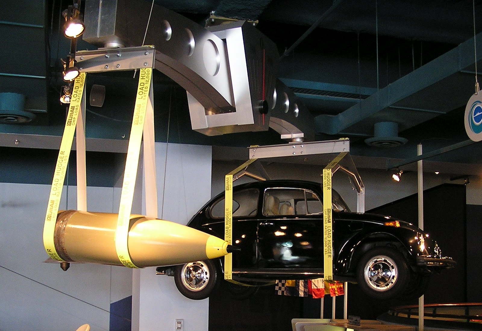 The battleship Missouri could fire 90 Volkswagen sized shells before the first one hit. The B52 could haul 100 five hundred pound bombs. The MOAB was 10,000 pounds No record for me.