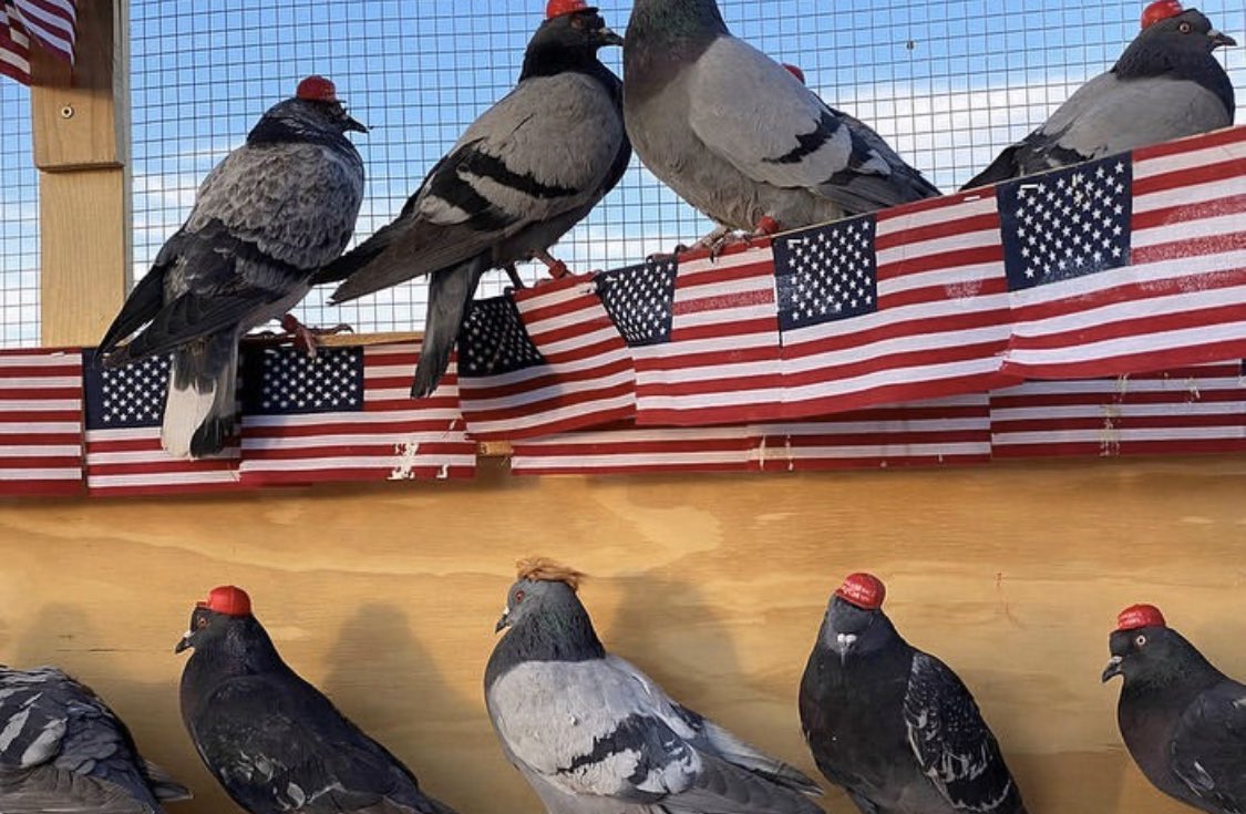 Pigeons donning tiny MAGA hats have been spotted in Downtown Las Vegas!!!