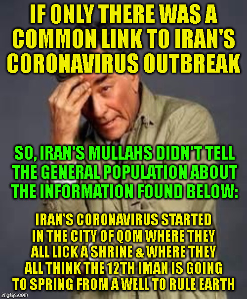 Many people strongly suspect that the practice of licking a holy shrine in Qom, epicenter of the current outbreak, has something to do with the rapid spread, including to senior members of the regime.