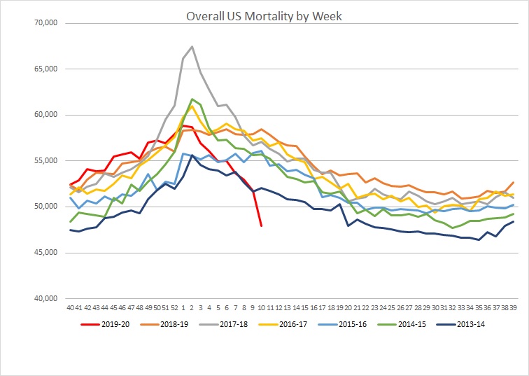 Perhaps analogous to TP shortages? People bought months’ worth and now don’t need to buy any. So anything that accelerates deaths is going to cannibalize from future numbers. Not to sound callous about it, but it does seem to make sense.