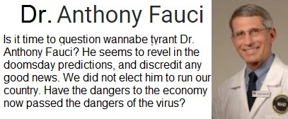 And David Asman just said that he wants to hear from Dr. Fauci when were gonna be able to. Dr. Fauci? Folks, if its left up to Dr. Fauci, were not gonna reopen til a year from September. Were not gonna open until we get a vaccine, if its left up to Dr. Fauci. We didnt elect Dr. Fauci. Everybody has a lot of admiration for Dr. Fauci. Hes 79 years old, hes been at the National Institutes of Health, he was instrumental in overcoming the medical blockade that was killing so many people from AIDS and HIV. Hes done great work, dont misunderstand. But we didnt elect Dr. Fauci, and Dr. Faucis not the guy that ought to be the one determining when we reopen the economy. And we are going to have to do this.