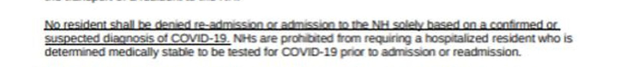 First hand knowledge of this, friend of family is a head nurse in a facility. When the order went thru she was one of the first to resist. None of her patients or staff were infected. She now has told us that because of this action 40+ of her patients are dead and her staff has been infected as well. A federal investigation needs to be conducted. They purposely gave these people a death sentence. Im hoping the families pool together and get this going, I know I would