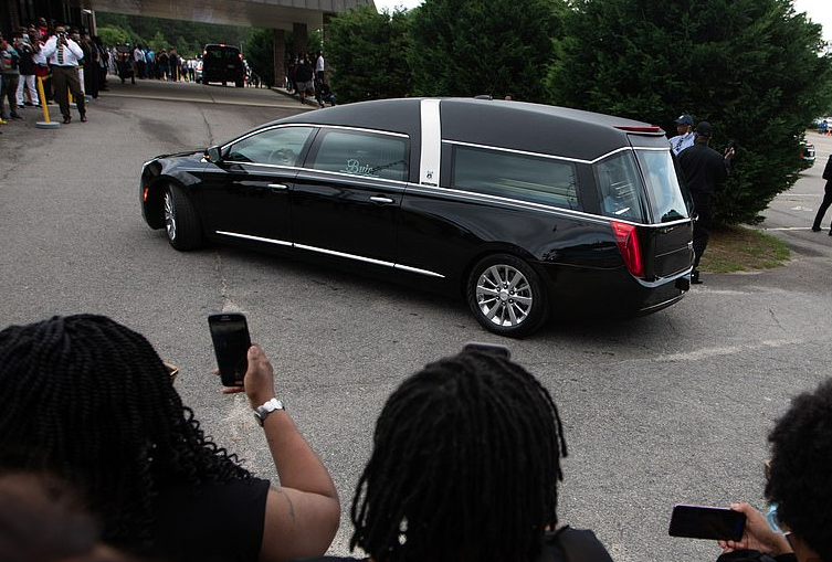 Mourners could be seen wearing masks and various shirts with George Floyd's face on it, with messages like 'I Can't Breathe' on them.