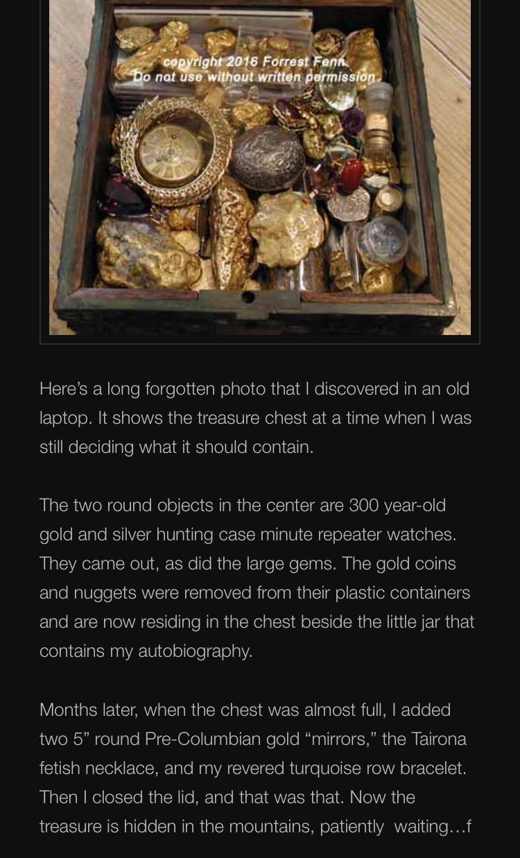 There were supposedly 9 vague clues in a poem the Fenn wrote that held the secret to where the chest of gold worth $1 million was hidden.