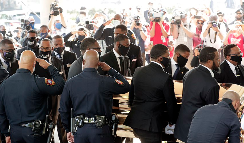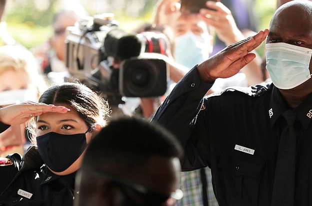 Police officers with the Texas Southern University police saluted the casket of George Floyd