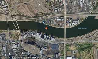 For what it’s worth, that picture doesn’t look like it’s over a lake. Awfully narrow for a lake.