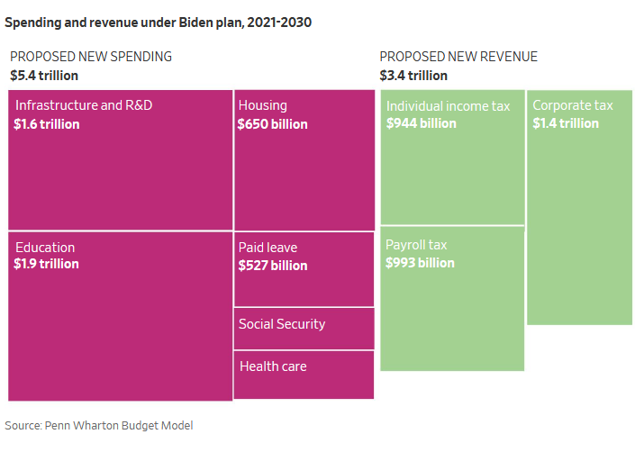 The former vice president has proposed a total of $5.4 trillion in new spending over the next 10 years, according to an analysis published Monday by the Penn Wharton Budget Model, a nonpartisan group at the University of Pennsylvanias Wharton School. That includes historically high allocations for sectors from education and health to child-care and housing.