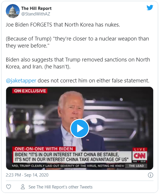 In an "interview" with Democrat operative CNN anchor Jake Tapper, Biden tried to attack President Donald J. Trump's foreign policy, specifically with regard to Asia and the Middle East.