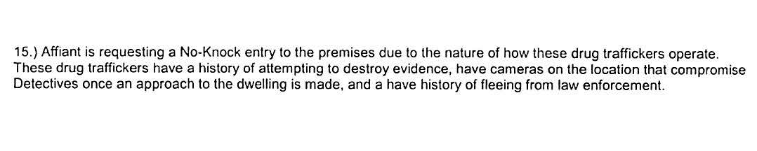People are questioning the “they knocked and announced” makes no sense since it takes lot of red tape, evidence to get a Judge to do a no knock. Why go through all of that and then be nice and knock and announce. According to AG a witness near the apartment heard the police knock and announce. NO body cam, etc showing they did or did not.