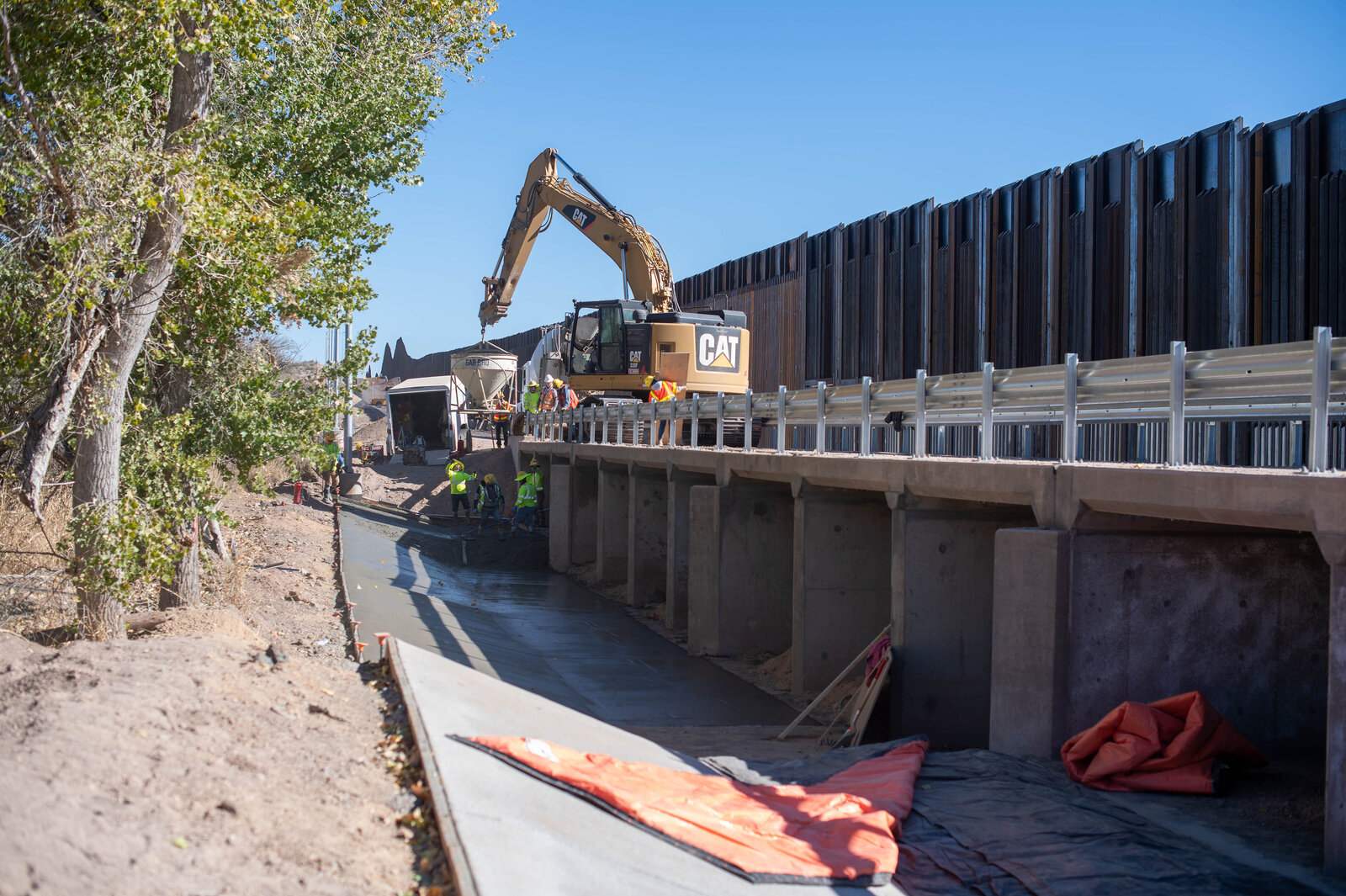 The San Pedro River Project in SE Arizona is really coming along. They are pouring concrete across the river bed where the barrier and patrol road bridge were built. That will make water flow more consistently over time, secure the structures from erosion, and make maintenance from debris and sediment easier.