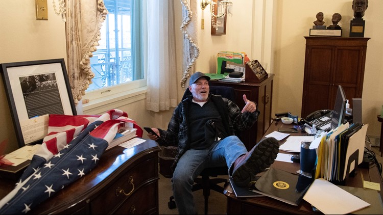 Federal officials also said he seemed to “very much enjoy this moment of fame,” after he put his foot on the desk of the nation’s highest ranking Democrat and boasted about stealing a document.