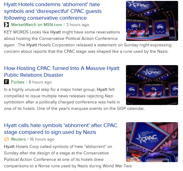 As noted by Fox News, a #BoycottHyatt hashtag spread on social media after it was learned that the hotel was allowing conservatives to host their event, “which some people alleged the company was endorsing by allowing it to happen at one of its properties.”