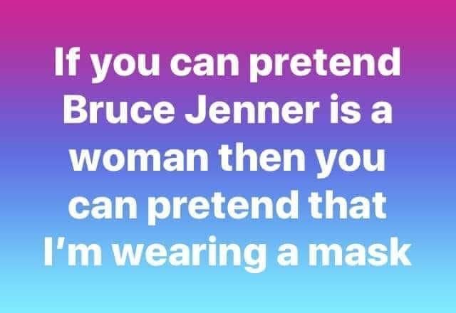 I’m identifying as a mask wearer. How dare you doubt my mask status based on outward appearance! :-/