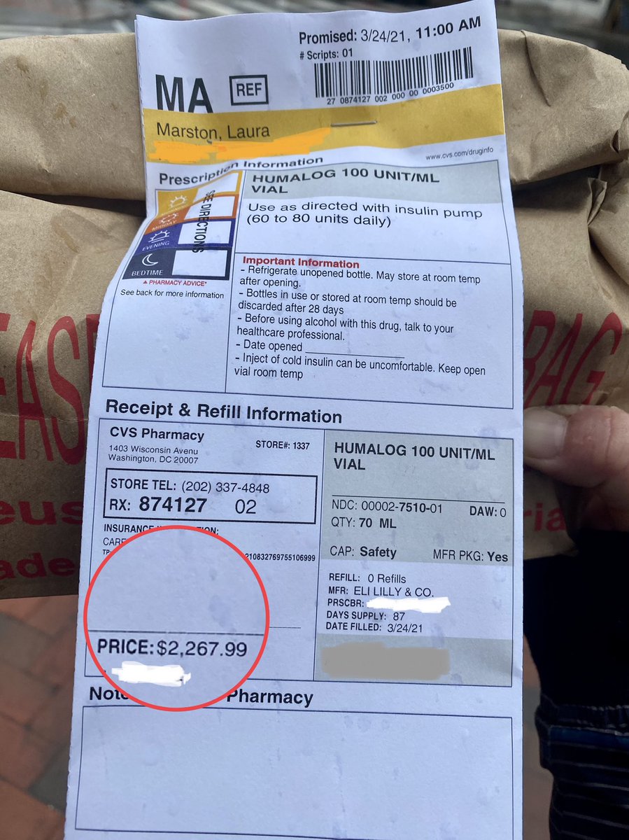 Daily reminder the insulin I’ve used for 24 years, Humalog, has gone from $21/vial to $275/vial with no changes to the insulin itself. That’s a 1200% increase on a “product” I die in 2 days w/o.