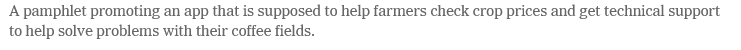 Half an hour into his meeting with coffee growers, the contractor excitedly revealed the tool he had brought to change their lives: a pamphlet inviting the farmers to download an app to check coffee prices and “be a part of modern agriculture.”