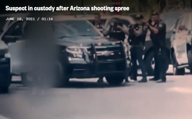Over the next 90 minutes, the driver of a white SUV went on to open fire at eight other locations in Peoria, Surprise and Glendale, before being taken into custody safely and without incident in a parking lot, authorities said.