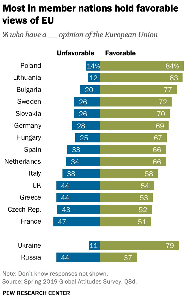 Interesting they left out Latvia and Estonia from the survey. Probably because their ethnic Russian population are less enamored with the EU than other folks.