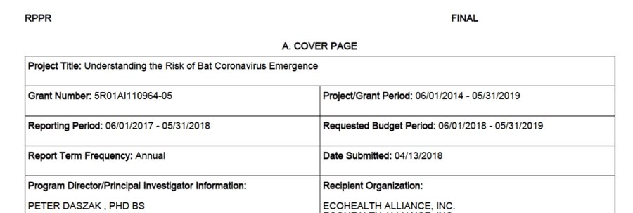 NIH states that EcoHealth Alliance violated Terms and Conditions of NIH grant AI110964.