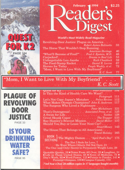 This was one of my deepest concerns. Five years before my daughter announced she was going to live with her boyfriend, she had made the same mistake. At age 18, she had run away from home to live with another boy-and bad gotten pregnant. When he deserted her, my daughter was so devastated and unable to cope that for years the burden of raising the baby had fallen on my husband's and my shoulders.
