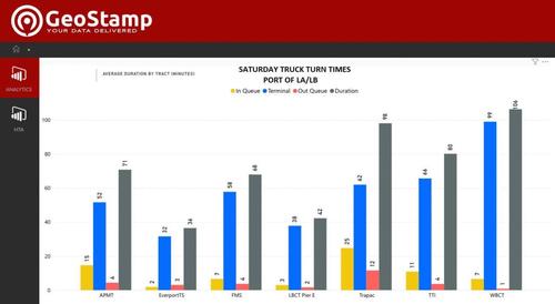 Duration of trucks at the terminals at the Port of LA and Long Beach show slow-moving trade this past Saturday.