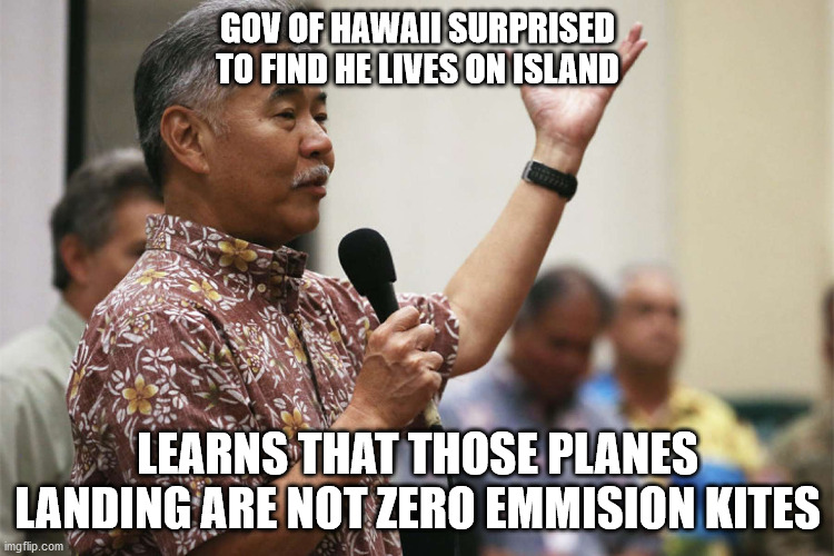 Okay, Governor, exactly how much has the land area of the Hawaiian Islands decreased due to climate change and "rising oceans"? Have any of the mansions (or the high-priced hotels) along the beaches gone under water?