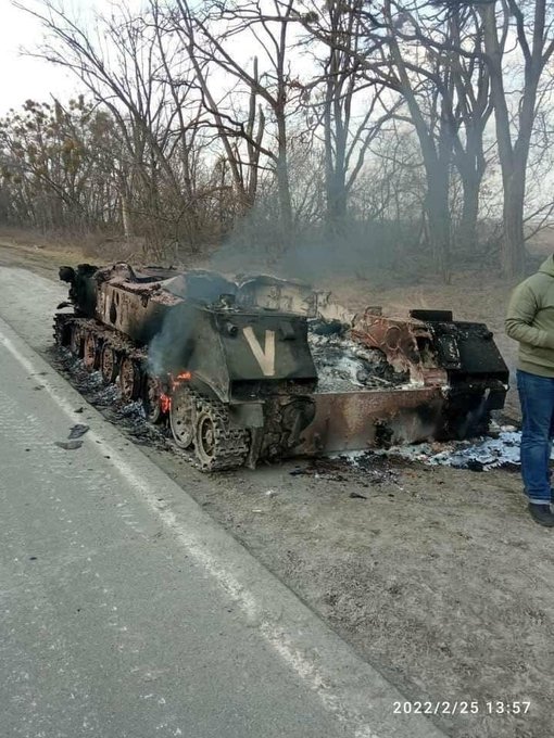 Multiple videos on social media of Russian military out of fuel, food and stuck on highways