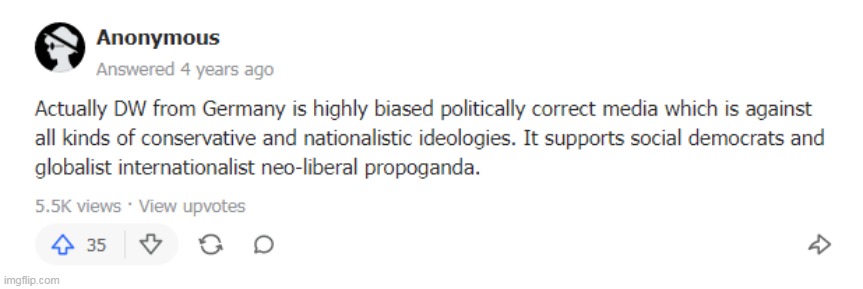 Deutsche Welle (DW) is a state news agency so the bias is inherent. No different than Tass, Pravda, Isvestia, RT, CNN...
