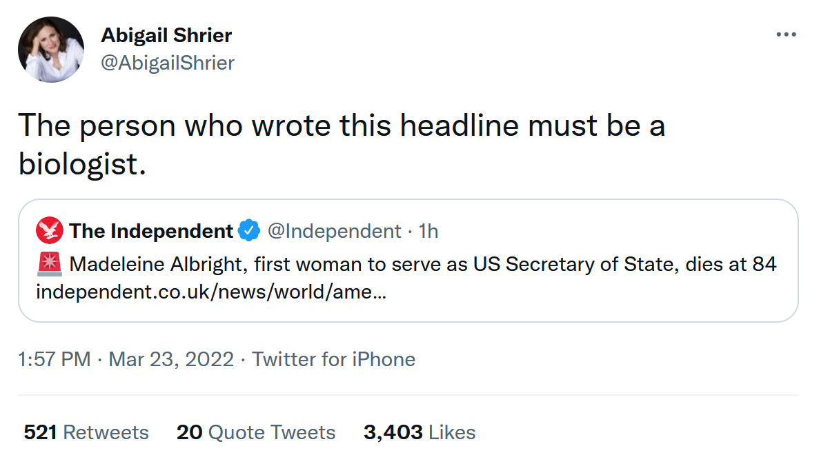 “We are heartbroken to announce that Dr. Madeleine K. Albright, the 64th Secretary of State and the first woman to hold that position, passed away earlier today,” her family said in a statement.