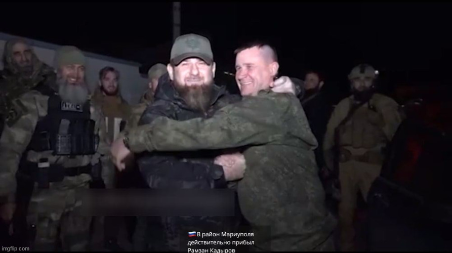 There are any number of photos of Ramzan Kadyrov in Ukraine...like this one with a Russian General who was supposedly killed in fighting.