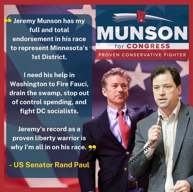 Paul on Munson: “I need his help in Washington to Fire Fauci, drain the swamp, stop out of control spending, and fight the DC socialists.”