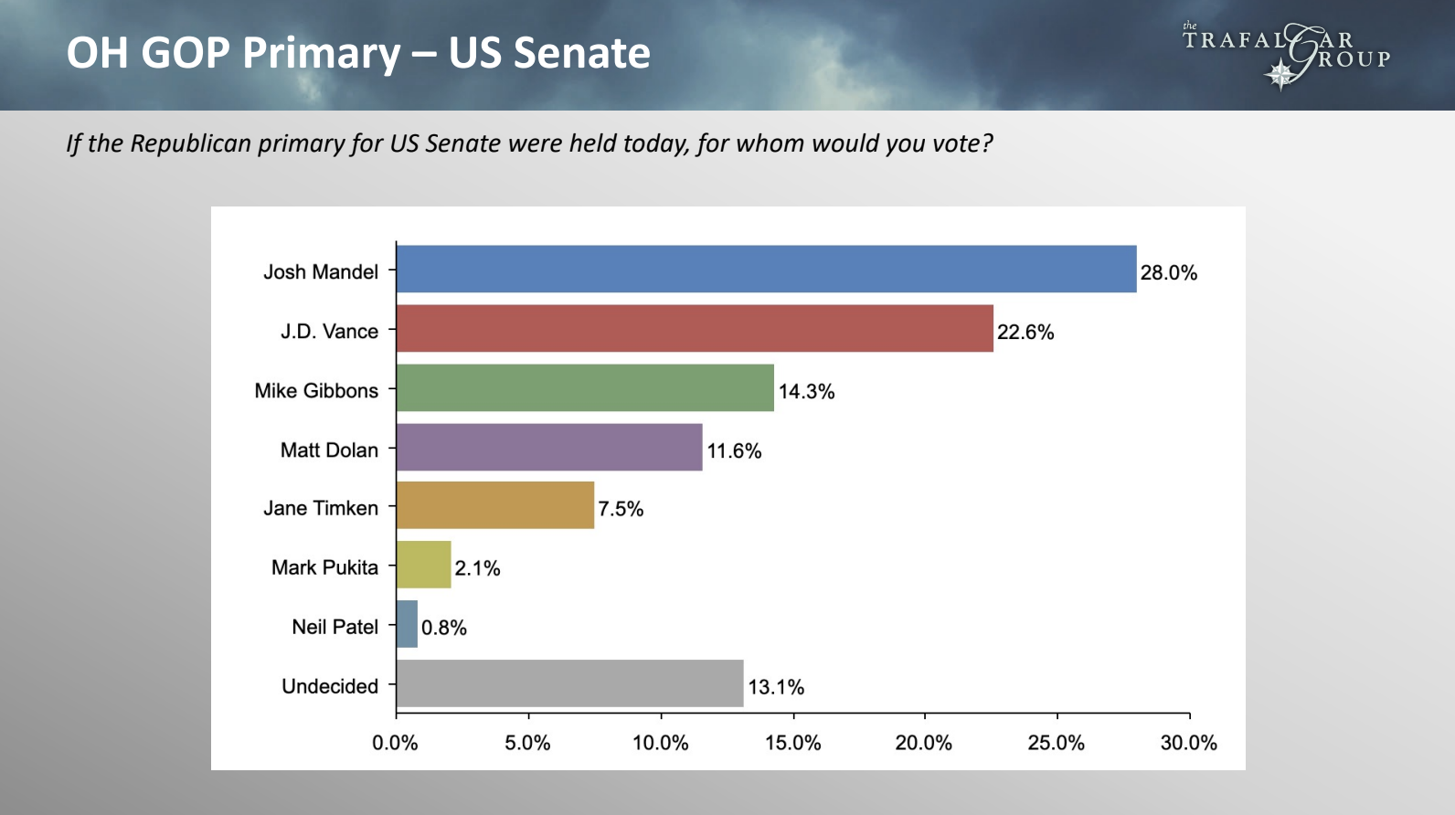 Final Independent #OHSen ‘22 #GOP primary @trafalgar_group #poll shows #Vance lead w/tight race for 2nd #OHpol