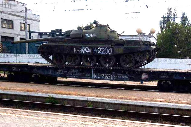 A long line of T-62 tanks, which began production as early as 1961, was photographed at a train station in Ukraine's southeastern city of Melitopol on Wednesday, just days after footage emerged of the aged armour being pulled out of storage across the border.
