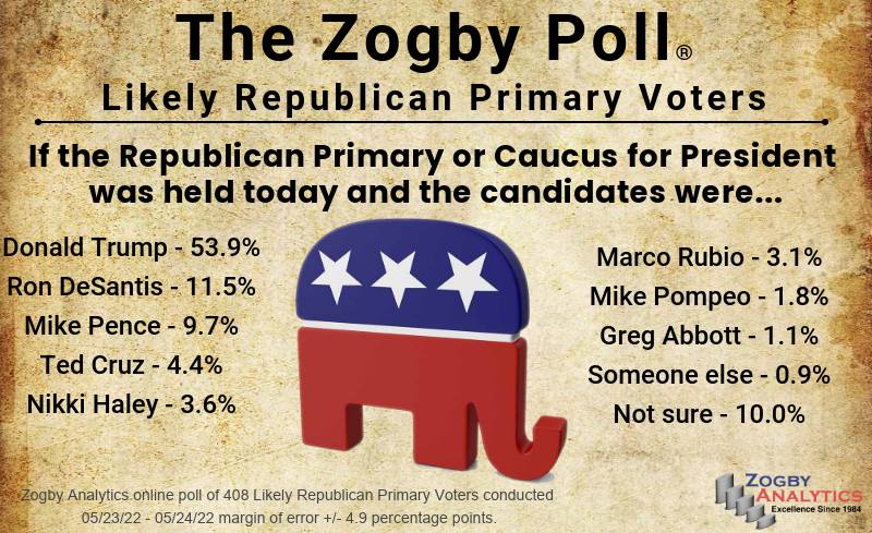 Trump still dominant! https://t.co/2m4HiGSpLB pic.twitter.com/Xy87WyZ4xw— The Zogby Poll (@TheZogbyPoll) June 22, 2022