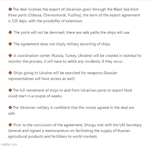Today, Russia has given guarantees that it will not attack Odessa from the sea for 120 days, so that Ukraine can sell its grain and other goods by sea.