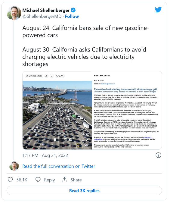 After Banning Non-Electric Cars, Now California Begs EV Owners NOT to Charge Them