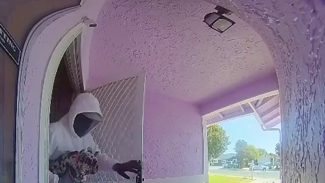Video, shown above, shows the thieves run away from the home with the dog.