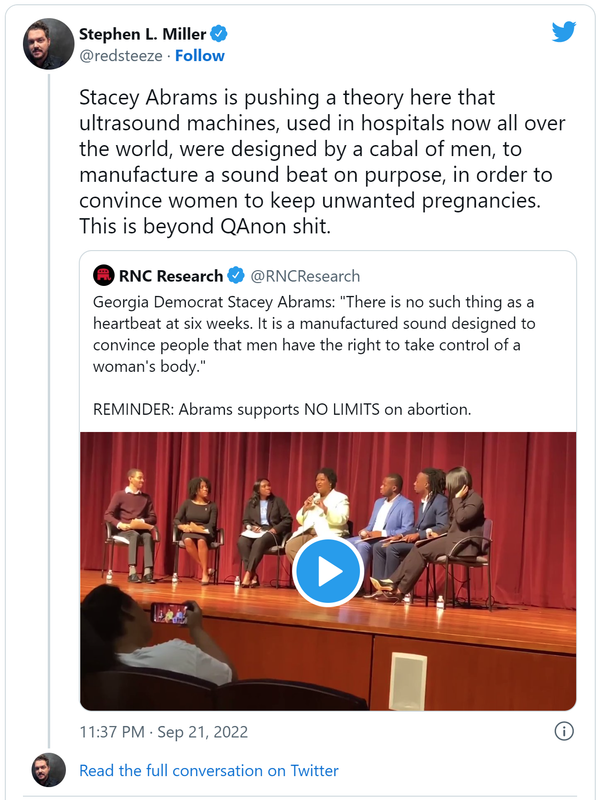 Georgia Democrat Abrams can be seen spouting lies and misinformation about fetal heartbeat alongside other speakers in an unearthed video.