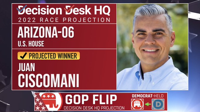 Juan Ciscomani also won in Arizona’s 6th Congressional District flipping that Democrat-held seat Republican: