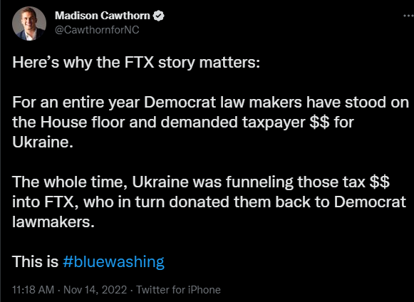 This is bigger than Bernie Madoff, but unlike Bernie Madoff, who was getting rich off a Ponzi scheme, the Democratic Party was getting rich off of FTX. FTX came onto the scene in 2019, and it spent $10 million to put Joe Biden in the White House in 2020. And the guy running FTX, the second-biggest Democrat donor in the midterms after Soros, of course, spent $40 million to get Democrats elected.