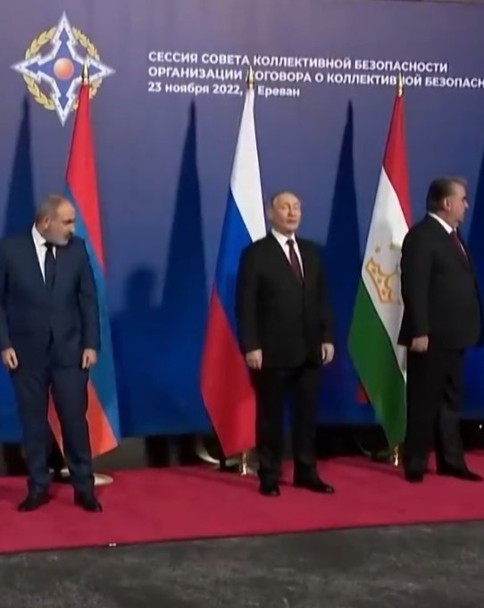 During a “family” photograph of leaders of countries in the Collective Security Treaty Organisation (CSTO) in Yerevan on Wednesday, Armenia’s prime minister, Nikol Pashinyan, stepped away from Putin, who had been standing to his left.