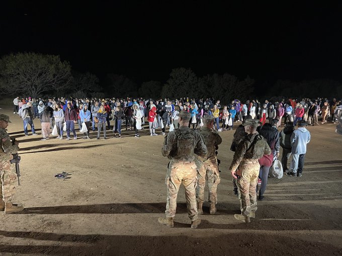 BREAKING: An enormous mass of hundreds of migrants have just crossed illegally into El Paso, TX. There is now a massive line of migrants waiting to be taken into custody by Border Patrol, and more are coming. El Paso sector had over 2,600 crossings in 24 hrs Fri-Sat. @FoxNews