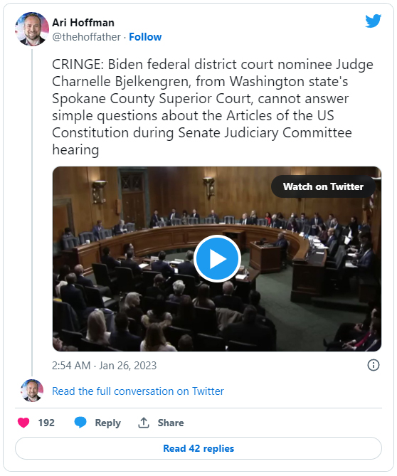 The questions were posed by Lousiana Senator John Kennedy (R) to state Judge Charnelle Bjelkengren, who was nominated by Biden for the lifetime position of U.S. District Judge for the Eastern District of Washington.